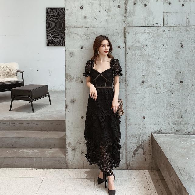 人気の春夏 パーティードレス 韓国 おしゃれ 安い 即納 お呼ばれ 結婚式 二次会 謝恩会 成人式 ブラック ロング 個性的 エレガント レース ワンピース プチプラ 長袖 クラシカル 10代 代 30代 の通販 価格比較のビカム